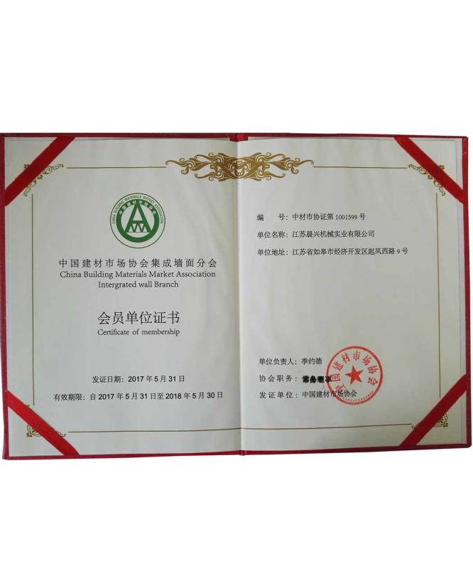 中國建材市場協(xié)會(huì)集成墻面分會(huì) 會(huì)員單位證書