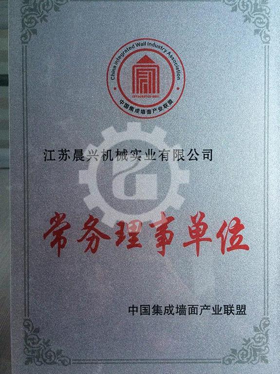 晨興機(jī)械榮獲中國(guó)集成墻面產(chǎn)業(yè)聯(lián)盟常務(wù)理事長(zhǎng)單位