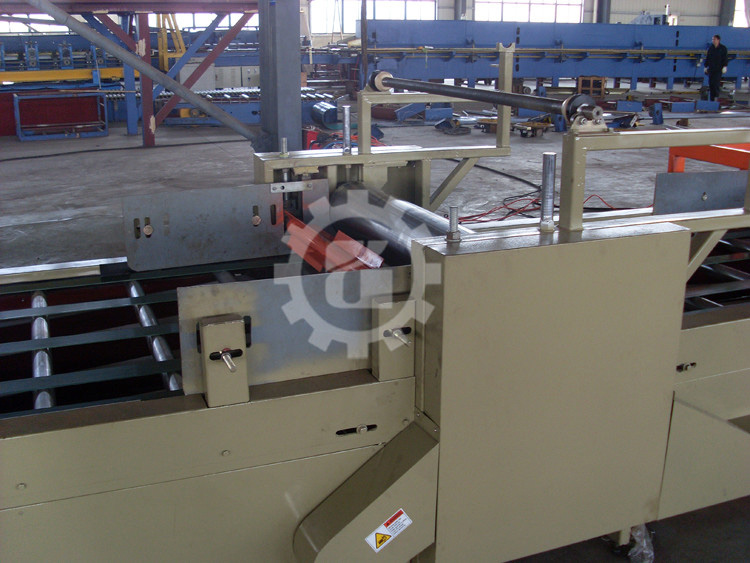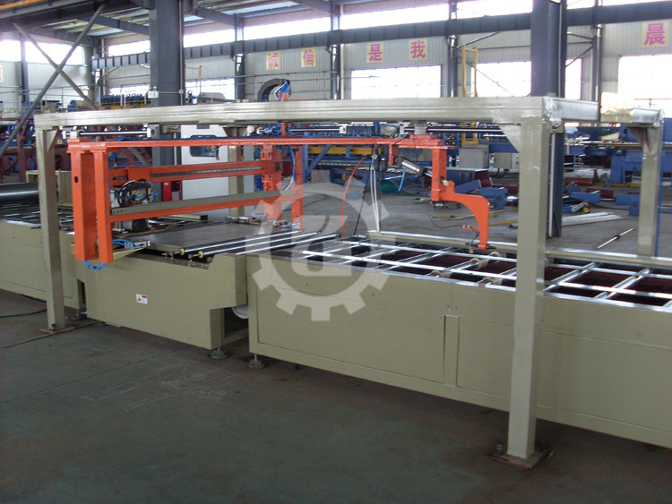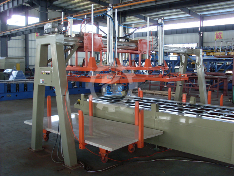 將成型后的板材自動裝到成型架上,減少了用工量,降低了人為對板材及托板的損壞,提高了自動化程度 |