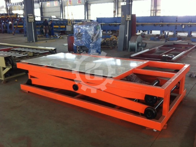 將成型后的板材裝到升降臺上,減少了用工量,降低了人為對板材及托板的損壞 |